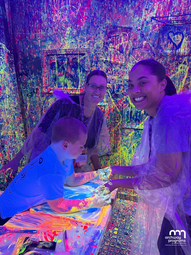 The students and staff from Archway Early Learning (AEL) had an exciting field trip to Paint Ground in Pitman to experience sensory splatter painting. Everyone got a little messy with paint and had a blast! Students used brushes, balloons, bottles, hands, and fingers to create artwork on canvases, walls, and even on themselves! What a fun day!